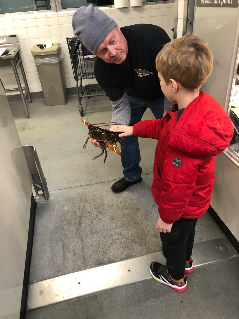 Tye told the man that lobsters pee out of their eyes (is that even true?) and this nice man asked if he wanted to touch one. Made this sick boy happy!