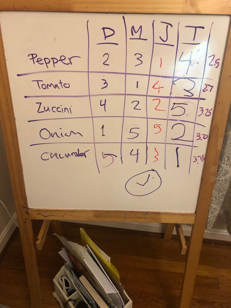 By average, peppers win! (Don’t check my math. It was a long day and I did it in my head)