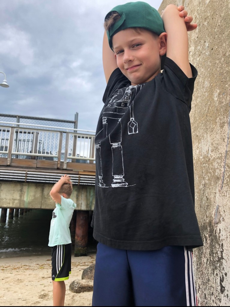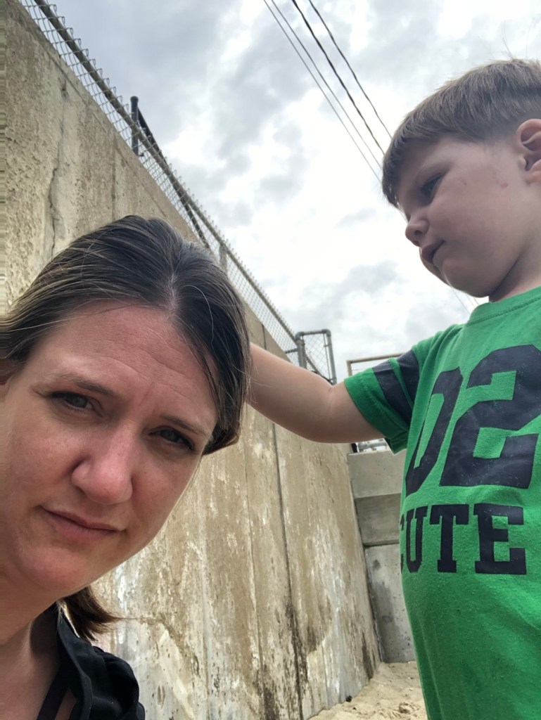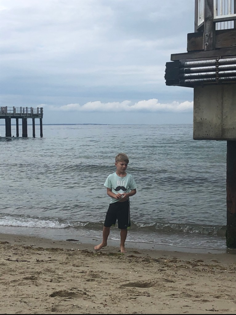 Other mom caught a picture of me lining my kids up for a lecture on listening. No ice cream for the Nicely boys! I have your attention now! Talked it out and all is good. We will wait for the others to return from their ice cream tripTipping point – got wet after I told him no since we didn’t have a change of clothes for the cold ferry ride back. He was in to his waist!Banished from the water he jumps on rocks. 🙄🤷♀️He’s petting me like a dog