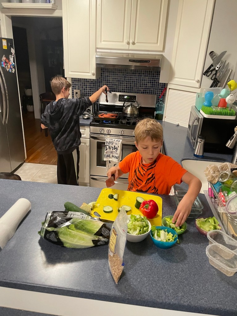 Making dinner tonight September 23, 2021 R Nicely One on hot dog duty. One on salad duty One refuses to help set the table So he threw the forks on the table Voila! Share this: Share on X (Opens in new window) X Share on Facebook (Opens in new window) Facebook Like Loading... Published by R Nicely View all posts by R Nicely