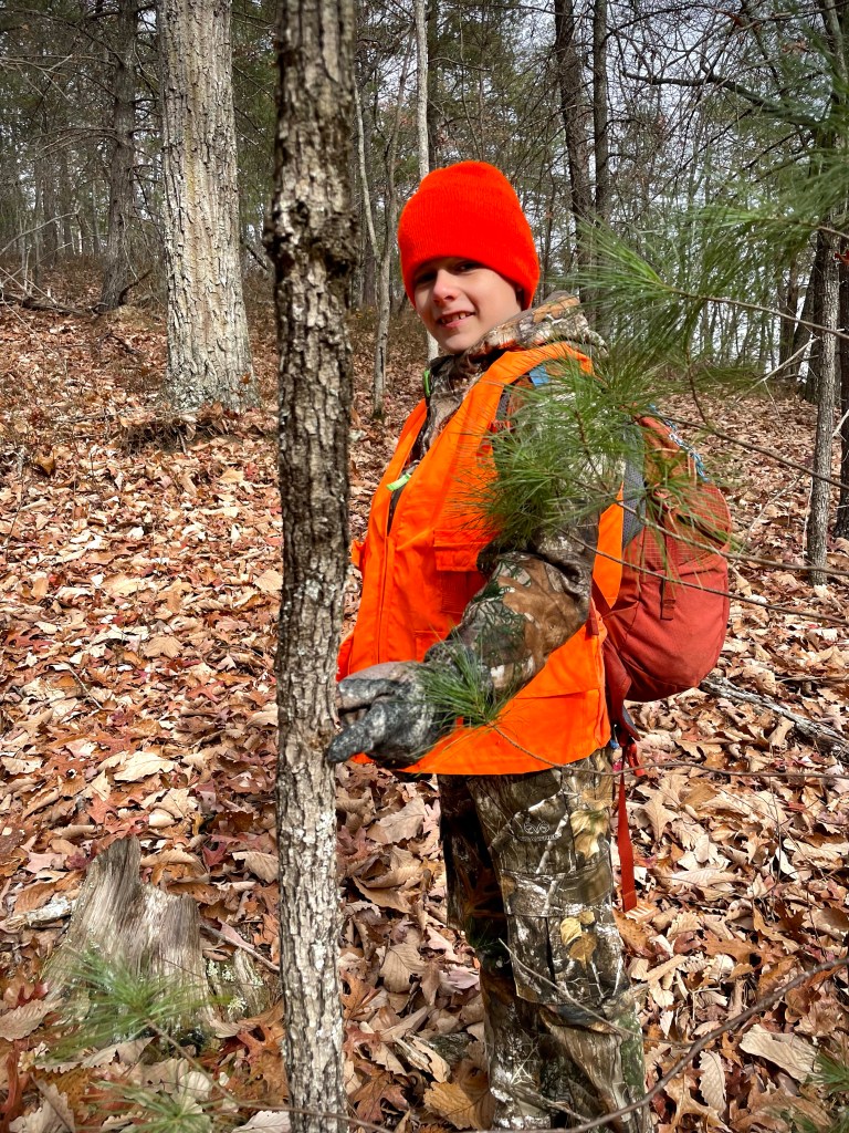 James Ethan Nicely is the 5th generation hunter to walk the woods of Longdale in search of the elusive Whitetail. No animals were harmed during his first deer hunt but he said “This is so fun” and “Will you take me again next year?”