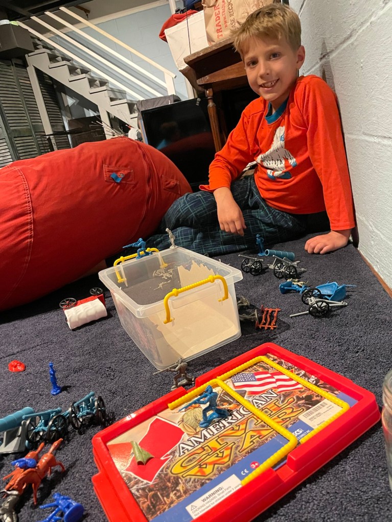 Tye and Mom recreating the warning behind. Don’t worry, we got him out.