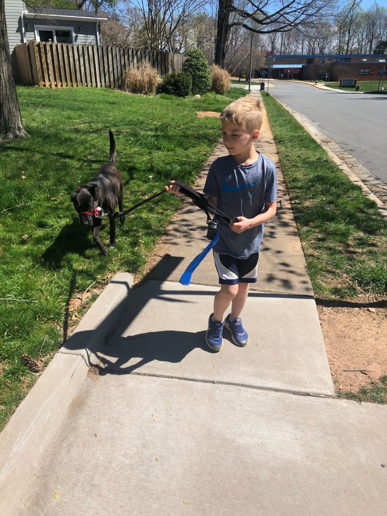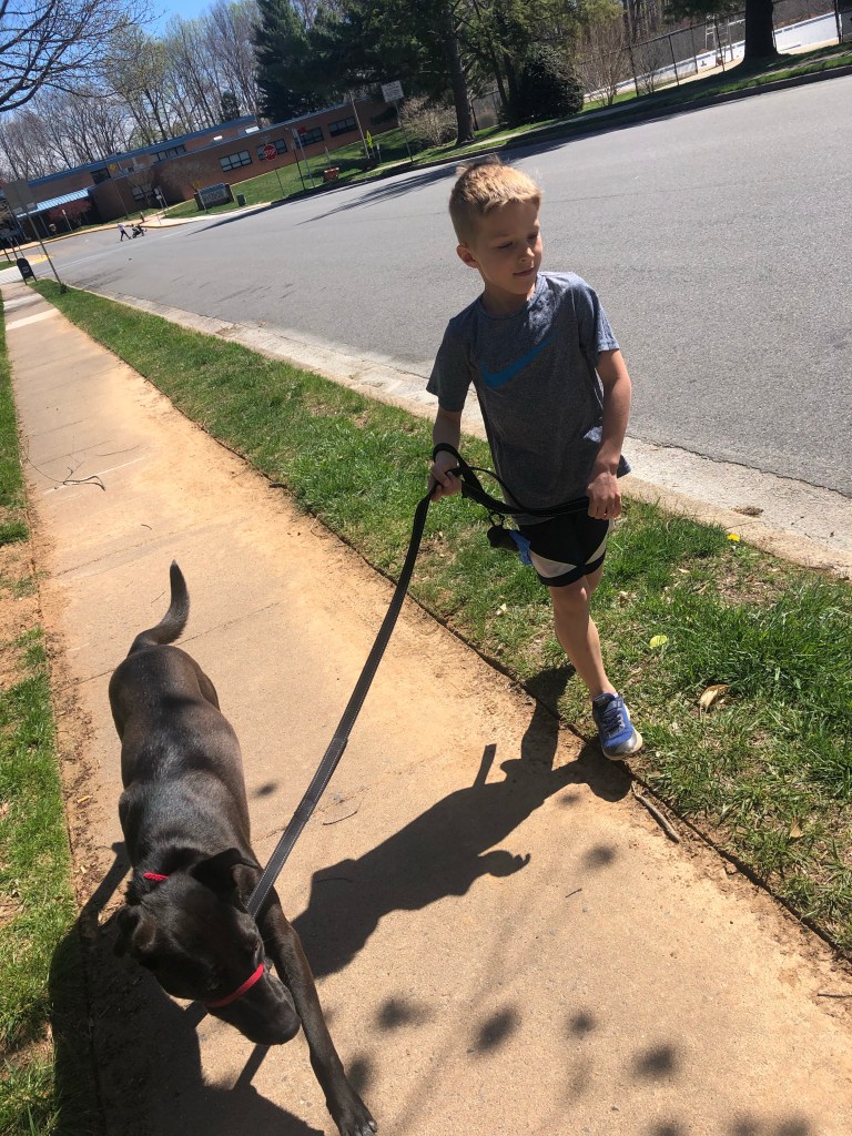 Tye’s getting the hang of it! April 4, 2020 R Nicely Yesterday she saw a squirrel while Tye had her. She took off and Tye mimicked Superman and did a belly flop. He held on though! Today we used a gentle leader and had better results.